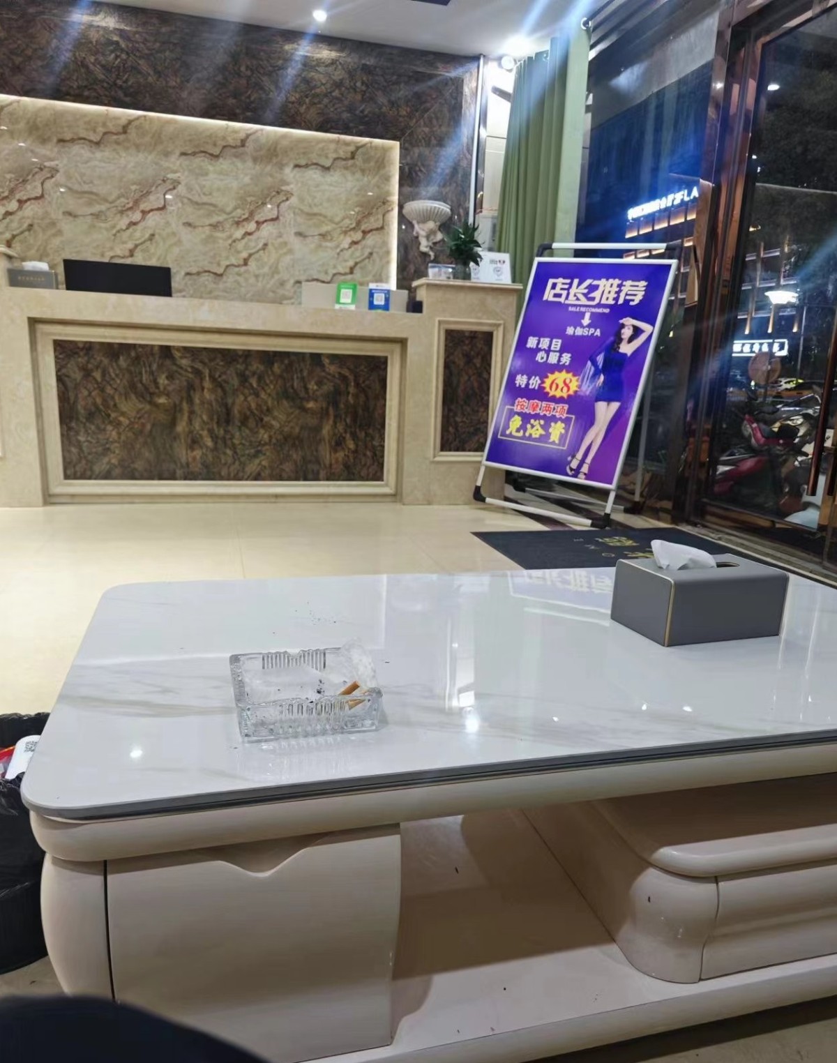一进门,大厅的环境还算可以,虽然不算特别豪华,但干净整洁,给人一种“还行”的第一印象。洗浴区也小巧精致,设施齐全。到这一步,我和朋友们都觉得,今晚应该不会翻车吧?